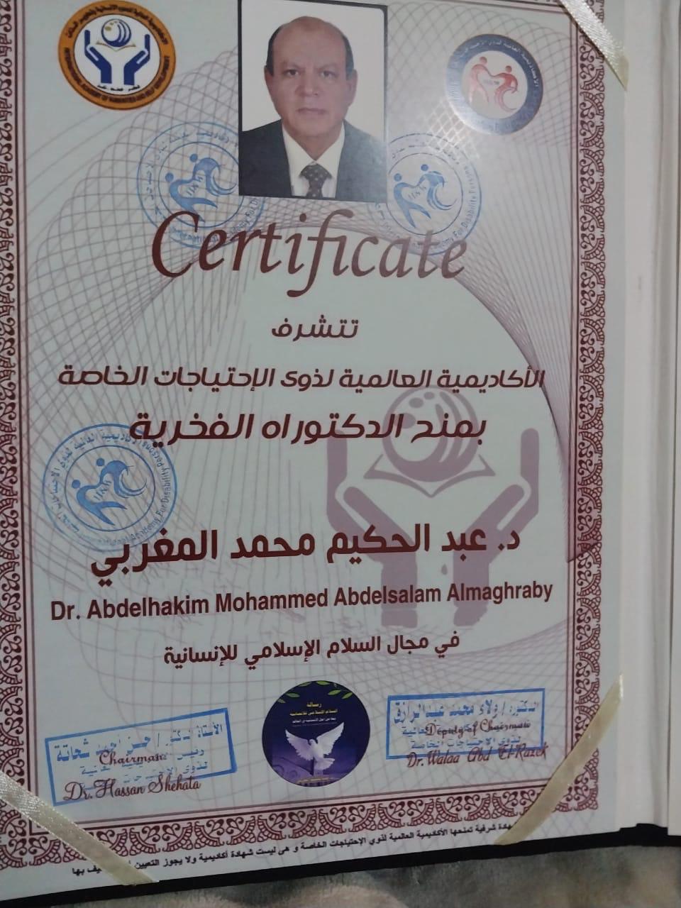 تكريم درع وشهادة دكتوراة فخرية من الاكاديمية